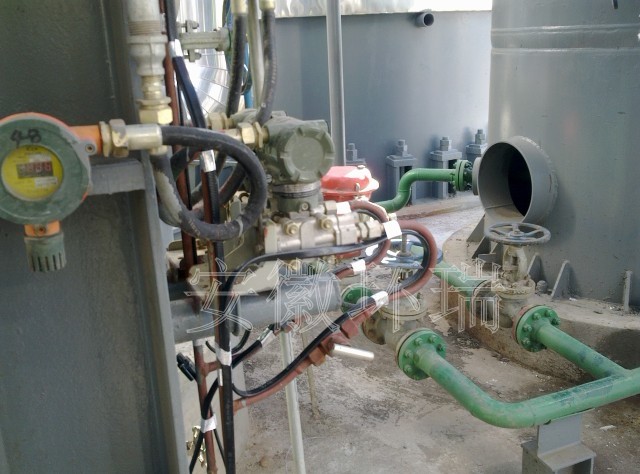壓力變送器液位計(jì)常應(yīng)氣候溫度過低,造成堵塞現(xiàn)象,需要電伴熱防凍,渝豐化工要求其冬季維持溫度為5--10℃,并且要求電伴熱帶具有防爆防腐功能。安徽環(huán)瑞提供ZRDHR-PF46滿足客戶對使用場合及維持溫度要求,其最高表面溫度為70℃,耐溫可達(dá)200℃。可保證維持溫度的情況下,不會出現(xiàn)溫度過高的情況,更加經(jīng)濟(jì)安全,而針對現(xiàn)場細(xì)長狹窄的地方自限溫電熱帶可實(shí)現(xiàn)交叉纏繞,解決局部伴熱的問題。以下為現(xiàn)場施工安裝圖: