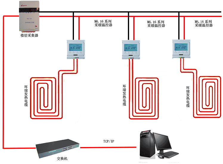 環瑞供暖健康系統是基于供暖計算機監控系統的開發與應用,結合國內外技術優勢,針對物業管理工作的特性而研發的產品系統軟件。通過采集器采集各個溫控器溫度,并將采集信息傳送到電腦里,從而實現遠程電腦監控的目的,它不僅囊括了當前監控軟件系統的設計優勢,還提出來更好的設計理想。本系統能夠對供暖系統進行環境溫度與供熱設備表面溫度進行設置與監控,從而實現智能化建筑的供暖節能需求。