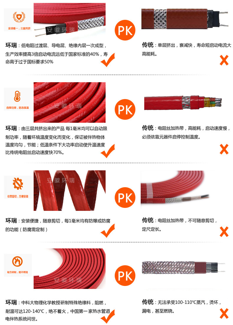 環瑞新型電伴熱帶和傳統電伴熱帶比較