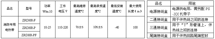 消防專用電熱帶規格型號: