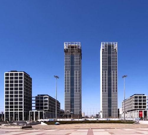 大連國(guó)際金融中心諾德大廈位于大連市沙河口區(qū)會(huì)展路和體壇路之間,東側(cè)是大連期貨廣場(chǎng)A座工程,南側(cè)是百年匯開發(fā)的大連國(guó)際金融中心配套工程,其中軸線是大連星海廣場(chǎng)的中軸線。A、B座對(duì)稱布局,面向原來的會(huì)展中心。雙子座大廈及其東西配套建筑圍合而成一個(gè)長(zhǎng)方形廣場(chǎng),其構(gòu)成向北開敞的會(huì)展中心收尾,并在大廈前方營(yíng)造了延伸到會(huì)展路以外的巨大廣場(chǎng)空間。