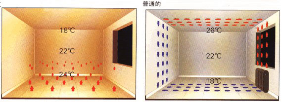 ◆熱量從下向上輻射,自下而上形成梯度溫差,人體感覺(jué)十分舒適,非常符合“頭要涼腳要熱”的中醫(yī)人體健康學(xué)根本。