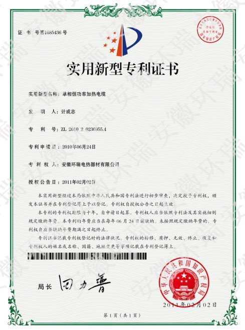 安徽環(huán)瑞單項(xiàng)恒功率電伴熱帶國(guó)家專(zhuān)利產(chǎn)品簡(jiǎn)介