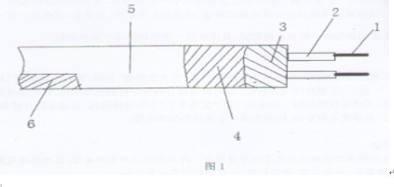 參見(jiàn)圖1,一種單相恒功率電伴熱帶,包括有二個(gè)電纜內(nèi)芯,其特征在于:每個(gè)電纜內(nèi)芯分別由一根鍍錫銅絞線組成,1、每根線芯分別包覆有芯線絕緣層氟塑料2、二個(gè)芯線絕緣層外依次包覆有發(fā)熱絲3、骨架層4、絕緣護(hù)套氟塑料5、金屬屏蔽網(wǎng)6和加強(qiáng)防腐護(hù)套氟塑