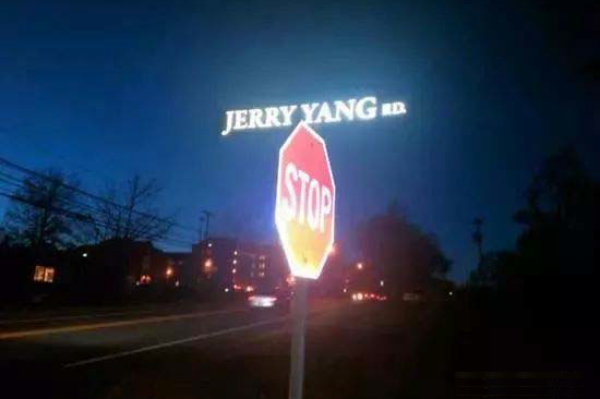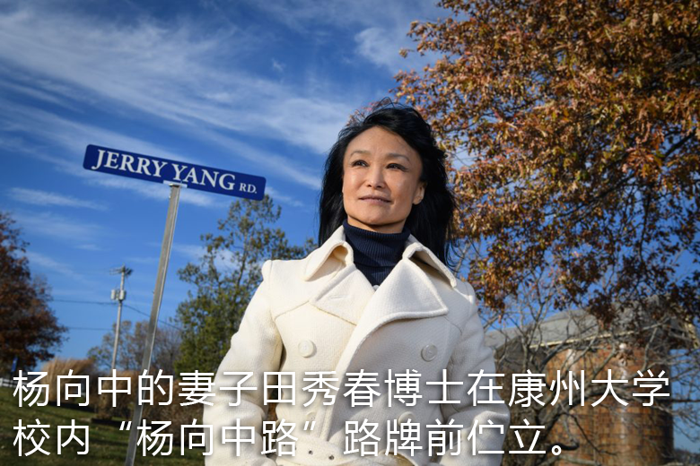 2017年11月17日上午,“楊向中路”("Jerry Yang RD",楊向中英文名字為"Jerry Yang")路牌在美國康州大學(xué)那條繁華的路邊豎起,當(dāng)時多家美國和國內(nèi)媒體爭相報道。