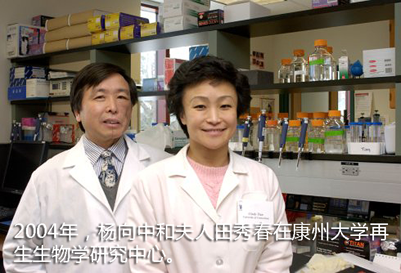 1996年楊向中加入美國康涅狄格大學(xué),任該校動物科學(xué)系副教授和生物技術(shù)中心動物基因部主任,負(fù)責(zé)組建該校轉(zhuǎn)基因動物實驗室;2001年創(chuàng)立康涅狄格大學(xué)再生生物學(xué)中心,并擔(dān)任主任。