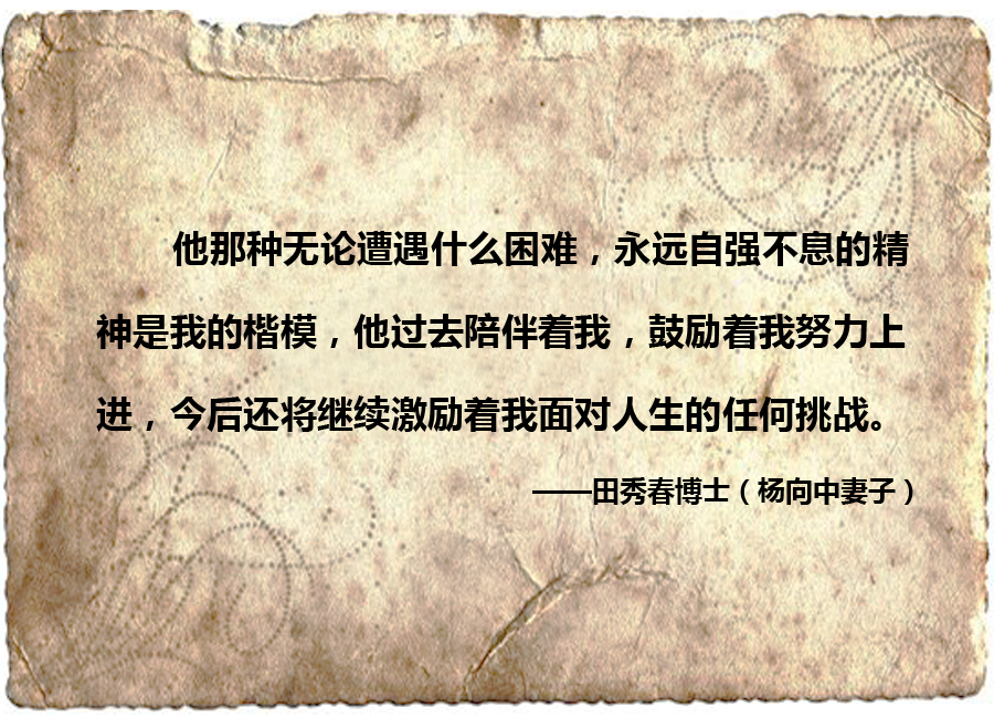 在2010年8月《南方周末》發(fā)表的一篇紀(jì)念楊向中的文章中,田秀春博士(楊向中夫人)回憶說:“他非常關(guān)心中國普通民眾的生存狀況,他幾乎每年都會寫幾本厚厚的建議書。”