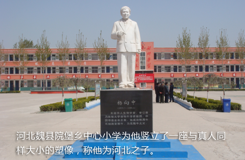 在與病魔進(jìn)行了長達(dá)12年的斗爭后,楊向中于2009年2月5日在美國波士頓病逝,享年49歲。他因克隆大型動物被《吉尼斯世界紀(jì)錄》收錄,他的科研人生壯麗輝煌,他的名字被載入《世界名人錄》。