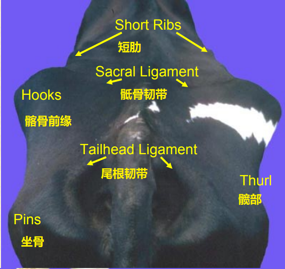 重點關(guān)注骨盆區(qū)域和尾根區(qū)域脂肪沉積情況,另外可以參考脊柱兩側(cè)短肋部脂肪覆蓋情況。